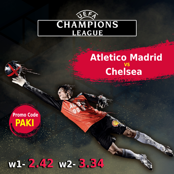 DAILYBETS Atletico Madrid VS Chelsea By The Pak Sports - January 20, 2021 0 781 Share Facebook Twitter Google+ Pinterest WhatsApp UEFA CHAMPIONS LEAGUE Atletico Madrid VS Chelsea Promo Code : PAKI